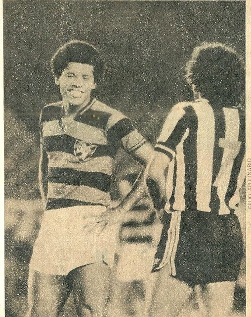 Aí está o centroavante Dario, em ação no Campeonato Brasileiro de 1975, defendendo o Sport contra o Atlético Mineiro, clube que o projetou nacionalmente. Pela expressão do Peito de Aço deduz-se que ele soltou mais uma frase de efeito na sua inocente ironia, dirigindo-se a um adversário, no caso, o ponta-direita Arlem, do Galo. Esse jogo, disputado no Mineirão, em 06/11/75 foi vencido pelo Atlético por 1x0. Anteriormente, em 21/08/75, o então campeão pernambucano tinha causado um grande impacto no panorama futebolístico nacional ao derrotar o, na época, superpotente Flamengo por 2x1. Partida disputada no Maracanã. O ponta-de-lança Miltão assinalou os dois gols do Leão, que, dirigido por Duque alinhou: Toinho; Marcos, Pedro Basílio, Alberto e Cláudio Mineiro; Luciano, Garcia e Assis Paraíba (Edmilson); Miltão (Peri), Dario e Peres. Dario também havia vestido a camisa do rubro-negro carioca. Zico, o badalado Galinho de Quintino, marcou para o Flamengo.