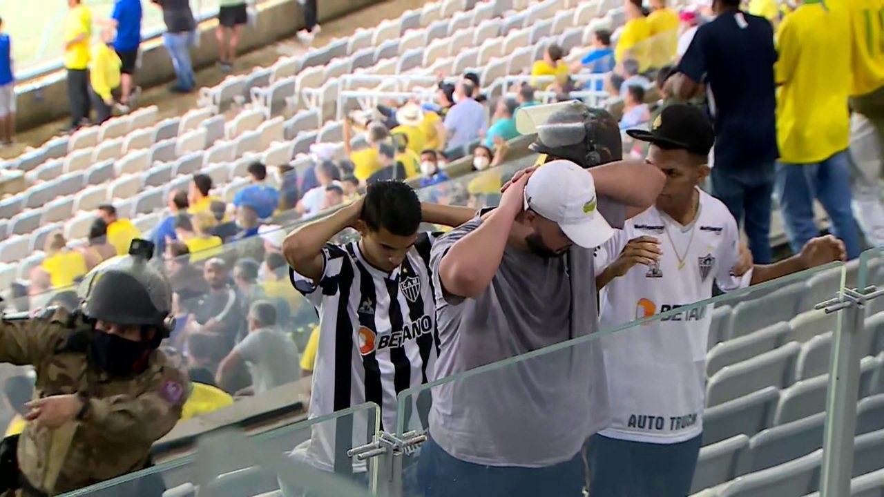 No gramado, o Brasil estava goleando o Paraguai pelas Eliminatórias da Copa 2022 no Catar, mas a empolgação da galera, nas arquibancadas do Mineirão foi interrompida. A Galoucura e a Máfia Azul, torcidas ‘organizadas’ Do Atlético e do Cruzeiro se digladiavam. Não havia paraguaio na jogada, era tudo brasileiro. Cena lamentável. A Polícia Mineira informou que prendeu 21 delinquentes. Todavia, se pelo menos um daqueles desordeiros não ficar um bom tempo vendo o sol nascer quadrado, não serviu de nada o esforço dos PMs, coitados.